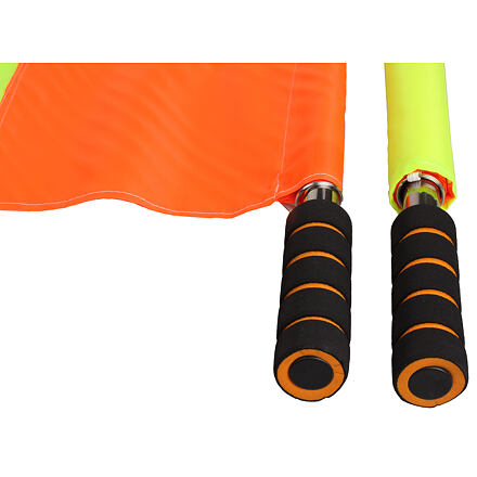 Súprava dvoch kusov zástaviek pre postranných rozhodcov Merco Line ponúka ľahkú hliníkovú konštrukciu s príjemnými molitanovými rukoväťami a štvorcový vzor vo svietivých farbách pre ľahkú viditeľnosť po celej ploche ihriska. Zástavka 370 x 340 mm; dĺžka 460 mm.