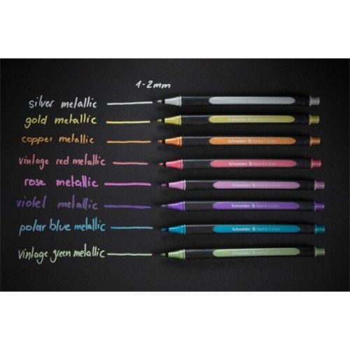 rýchloschnúci atrament, * prietok atramentu je regulovaný ventilom, * okrúhly hrot, šírka stopy 1-2 mm