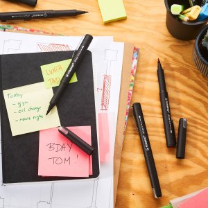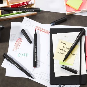 Šírka stopy 0,8 mm., * vhodný na písanie aj rysovanie podľa šablóny alebo pravítka, * hrot zasadený v kovovom puzdre pre dlhú životnosť, * protišmyková mäkká gumová úchopová zóna, * praktická kovová spona pre použitie na cestách, * nezmývateľný, vodou riediteľný atrament