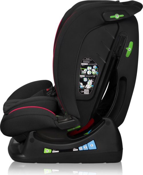 Bezpečnosť: Priestranná opierka hlavy vystužená penou Memory Foam dokonale absorbuje preťaženie, chráni hlavu a krčnú chrbticu. Použitie moderných materiálov, ako je polypropylén a sklolaminát, ovplyvňuje pevnosť celej konštrukcie. Masívne telo autosedačky poskytuje najvyššiu úroveň bezpečnosti.
