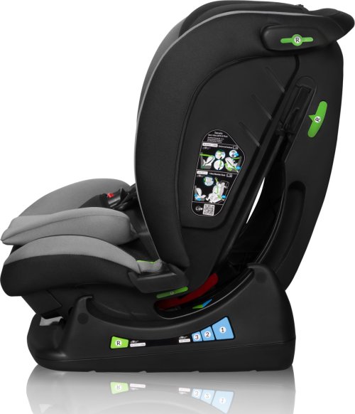 Bezpečnosť: Priestranná opierka hlavy vystužená penou Memory Foam dokonale absorbuje preťaženie, chráni hlavu a krčnú chrbticu. Použitie moderných materiálov, ako je polypropylén a sklolaminát, ovplyvňuje pevnosť celej konštrukcie. Masívne telo autosedačky poskytuje najvyššiu úroveň bezpečnosti.