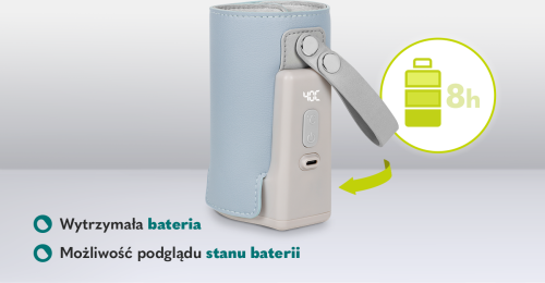 kompaktný a ľahký, ľahko sa zmestí do tašky alebo do batohu, 5 možností nastavenia teploty: 38 ° C, 40 ° C, 42 ° C, 45 ° C, 50 ° C, udržiavanie teploty a ohrev studeného jedla, LCD displej, regulátor teploty , termostat a poistka chráni pred prehriatím, indikátor nabitia vstavanej batérie, konektor USB-C umožní nabíjanie z elektrickej zásuvky, powerbanky alebo aj v automobile cez zásuvku zapaľovača (iba cez napájací zdroj 5V DC 2A) nastaviteľné zapínanie na suchý zips, popruh pre pripevnenie rukoväť kočíka alebo na tašku, neobsahuje BPA.