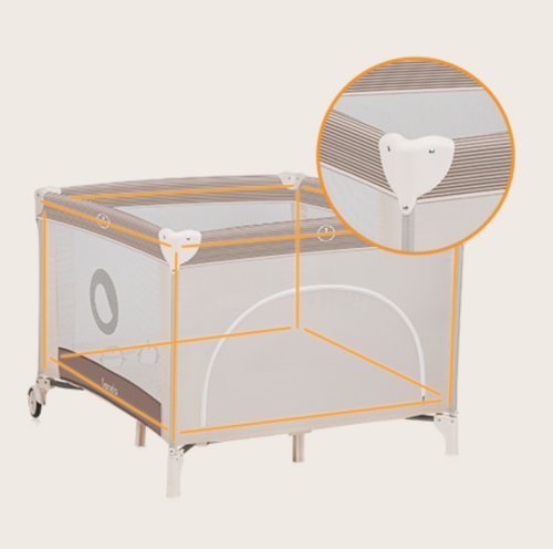 vhodné pre deti 0 - 36 mesiacov do max hmotnosti 15 kg, bočný vchod so zipsom na vonkajšej strane, vzdušné a priehľadné steny - umožní sledovať dieťa, zvýšené dno zaisťuje lepšiu ventiláciu a chráni pred chladom od podlahy, konštrukcia bez ostrých hrán - bezpečná opora pri prvých pokusoch o vstávanie a chôdzu, pohodlná praktická prepravná taška.