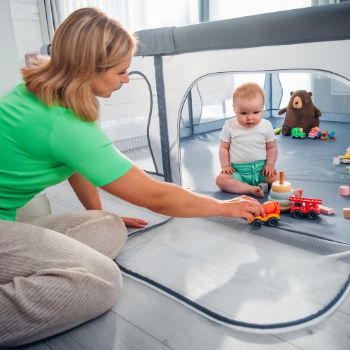 Oddelený priestor poskytuje bezpečné a hygienické podmienky na hru a vývoj dieťaťa a sieťované steny uľahčujú vzájomné pozorovanie.