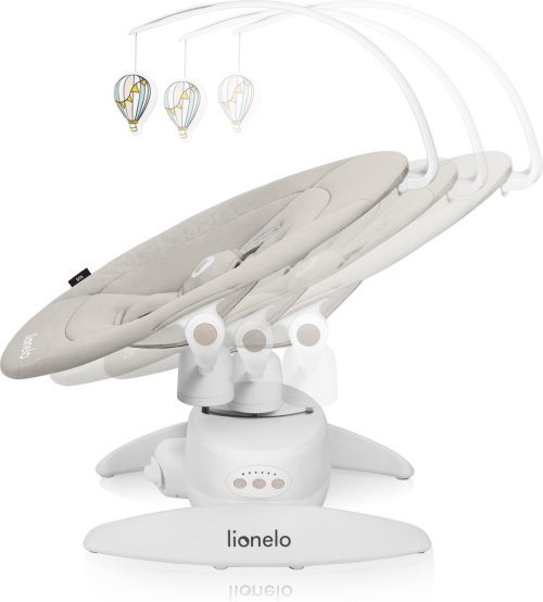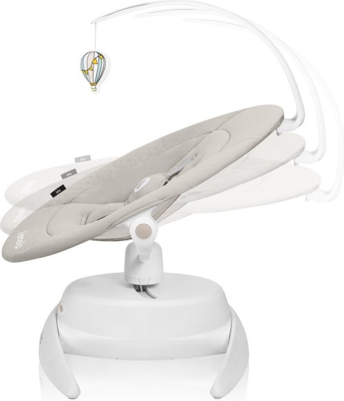 určené pre deti od narodenia do doby, než dosiahnu hmotnosť 9 kg alebo zvládnu sedieť široké, vhodne tvarované lehátko zaisťuje pohodlnú a bezpečnú polohu dieťaťa otočné o 360 ° 3 polohy sklonu opierky 3 hojdacie pohyby v kombinácii s 5 stupňovým nastavením rýchlosti tichý chod motora 5- tie bodové bezpečnostné pásy s polstrovaním ovládací panel je v strednej časti základne prehrávania 12 melódií, ovládanie hlasitosti napájania 2 spôsobmi: 4 ks 1,5 V batérie AA (nie sú súčasťou balenia) alebo USB kábel, ktorý je súčasťou balenia (používajte so sieťovým adaptérom 5, 8V DC 0,8A) odnímateľná hrazdička s hračkami maximálna nosnosť 9 kg protišmykové podložky na základni odnímateľný poťah možno prať pri max 30°C