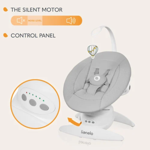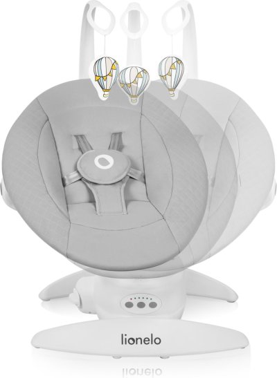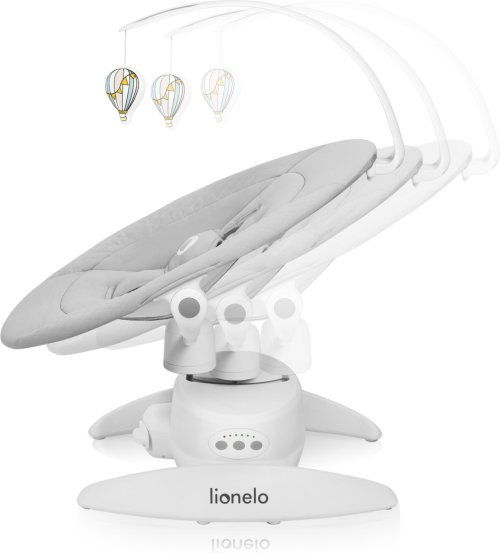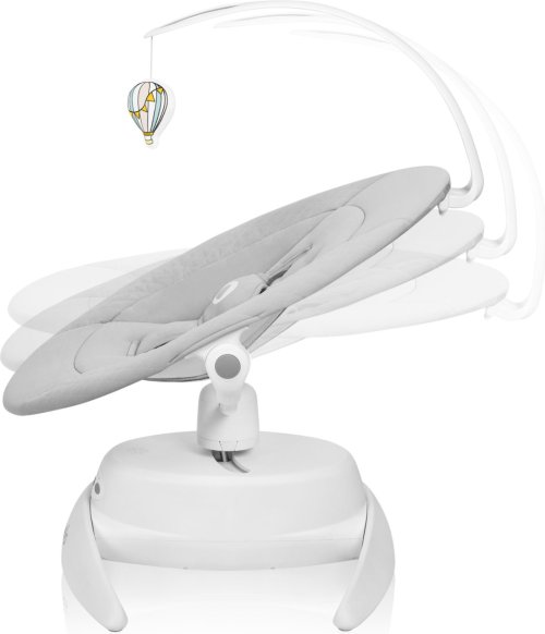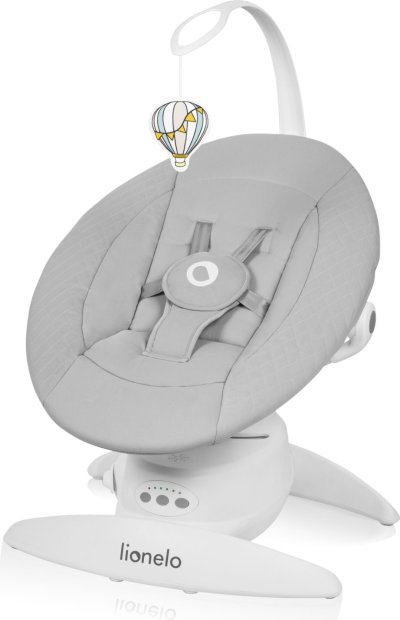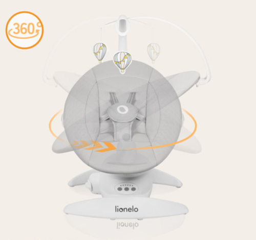 určené pre deti od narodenia do doby, než dosiahnu hmotnosť 9 kg alebo zvládnu sedieť široké, vhodne tvarované lehátko zaisťuje pohodlnú a bezpečnú polohu dieťaťa otočné o 360 ° 3 polohy sklonu opierky 3 hojdacie pohyby v kombinácii s 5 stupňovým nastavením rýchlosti tichý chod motora 5- tie bodové bezpečnostné pásy s polstrovaním ovládací panel je v strednej časti základne prehrávania 12 melódií, ovládanie hlasitosti napájania 2 spôsobmi: 4 ks 1,5 V batérie AA (nie sú súčasťou balenia) alebo USB kábel, ktorý je súčasťou balenia (používajte so sieťovým adaptérom 5, 8V DC 0,8A) odnímateľná hrazdička s hračkami maximálna nosnosť 9 kg protišmykové podložky na základni odnímateľný poťah možno prať pri max 30°C