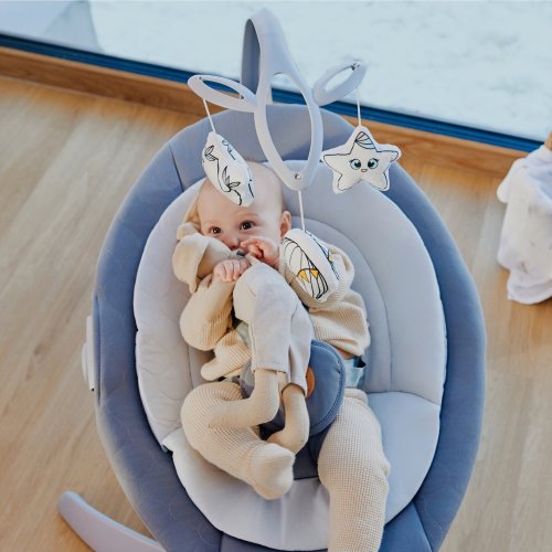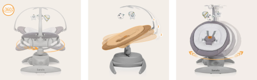 určené pre deti od narodenia do doby, než dosiahnu hmotnosť 9 kg alebo zvládnu samostatne sedieť široké, vhodne tvarované lehátko zaisťuje pohodlnú a bezpečnú polohu dieťaťa 5 stupňa nastavenie rýchlosti hojdania 5 bodové bezpečnostné pásy s polstrovaním v rozkroku ovládací panel je v strednej časti základne prehrávania 14 melódií (12 melódií + 2 zvuky prírody) ovládanie prostredníctvom priloženého ovládača bluetooth pripojenie na prehranie hudby podľa vlastného výberu napájania 2 spôsobmi: 4 ks 1,5V batérie AA (nie sú súčasťou balenia) alebo USB kábel (súčasťou balenia - používajte so sieťovým adaptérom 5,8V DC 0,8A) odnímateľná hrazdička s hračkami maximálna nosnosť 9 kg je možné prať ručne jemným pracím prostriedkom pri max. teplote 30°C