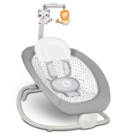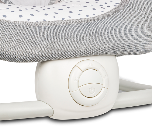 polohovateľné operadlo ručný hojdací systém interaktívnej hračky - pri stlačení vydávajú zvuky jemné vibrácie prehrávania 12 melódií, ovládanie hlasitosti pre prevádzku je potrebné 2 x AA batérie (nie je súčasťou balenia) režim úspory energie vankúšik na opierku hlavy ľahké skladanie do kompaktnej veľkosti montáž bez náradia odnímateľné polstrovanie možno prať v práčke max na 30 ° C 5-bodové bezpečnostné pásy protišmykové kryty - chráni podlahu proti poškriabaniu ideálny aj na cestovanie