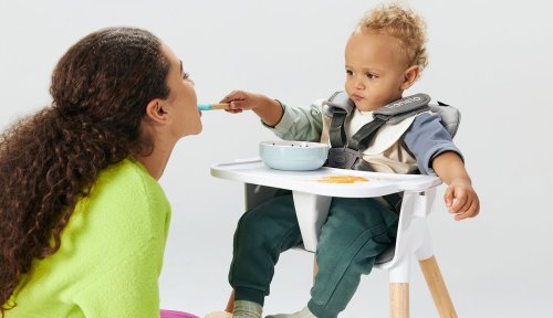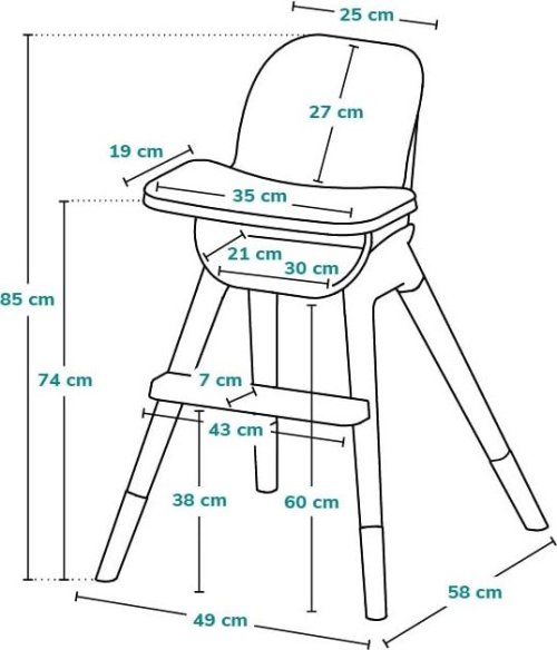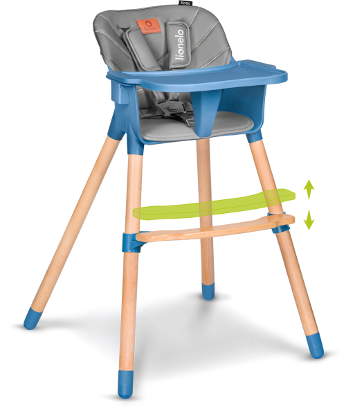 2v1 prispôsobená vývoju dieťaťa: pre batoľa verzia na vysokých nohách s opierkou na nohy, pre staršie dieťa verzia na kratších nohách - ideálny pre detský stôl konštrukčný materiál z potravinárskeho plastu a drevo z udržateľných zdrojov odnímateľné nohy umožňujú nastaviť výšku stoličky podľa aktuálnych potrieb dieťaťa protišmykové podložky zaisťujú stabilitu a bezpečnosť a chránia podlahu pred poškriabaním ergonomické operadlo podnožka 5-bodové bezpečnostné pásy 2 úrovne nastavenia výšky stoličky veľký podnos, pultík otvor v operadle pre ľahké premiestňovanie