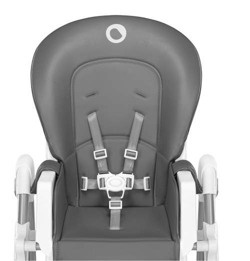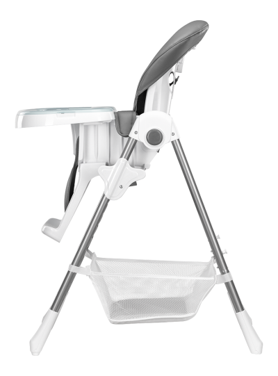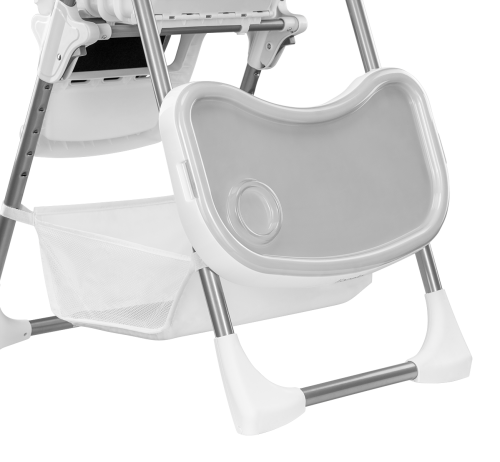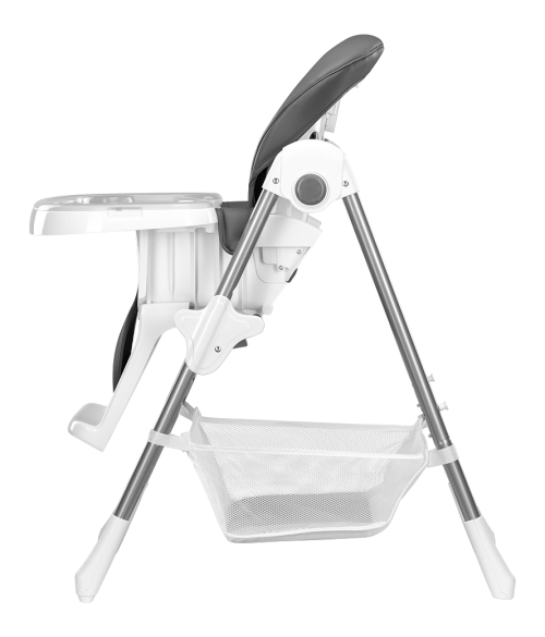 odolný oceľový rám 6 úrovní nastavenie výšky 3 úrovne nastavenia operadla protišmykové podložky na predných nohách zabraňujú prevráteniu stoličky plastové kolieska na zadných nohách stoličky 5 bodové bezpečnostné pásy odnímateľná opierka nôh dvojdielny nastaviteľný podnos so špeciálnym miestom pre šálku (odnímateľnú hornú časť možno umývať ) ergonomické sedadlo pohodlné mäkké čalúnenie z eko-kože možno ľahko čistiť veľký kôš na príslušenstvo alebo hračky ľahké a rýchle skladanie, vhodná na cesty
