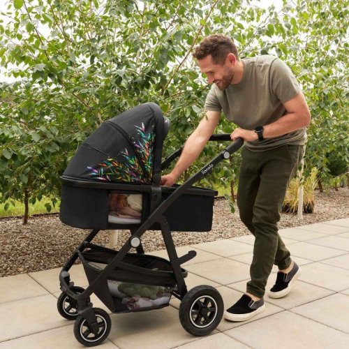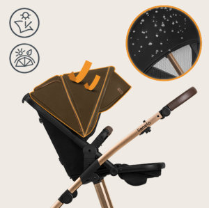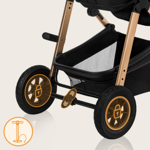 jednoduchá montáž kočíka po i proti smeru jazdy, ľahký hliníkový rám, výškové nastavenie rukoväte, nafukovacie kolesá (predné: 18 cm, zadné: 23 cm) + brzda kolies - dvojitý systém redukcie vibrácií, XXL strieška lemovaná materiálom odrážajúcim UV žiarenie chrániace pred slnkom, dažďa korbička s pevným madlom k ľahkému prenášaniu dieťaťa - po stranách sú ventilačné panely pre správnu cirkuláciu vzduchu, kvalitný pohodlný matrac - poťah je možné sňať a vyprať, nastavenie polohy v 3 úrovniach, nastavenie opierky nôh v 3 úrovniach, priestranný kôš, 5 bodové pásy, jednoduché skladanie do kompaktnej veľkosti vďaka "zacvaknutiu 8.