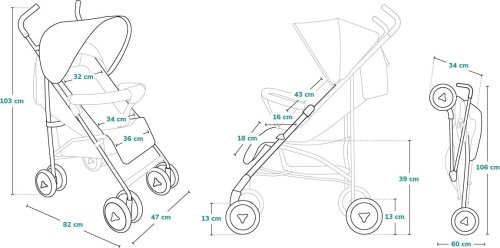 kvalitná a ľahká kovová konštrukcia veľké penové kolesá EVA pre lepšie manévrovanie 5 bodové bezpečnostné pásy nastavenie opierky chrbta do 4 polôh kôš na nákup blokácie proti nechcenému zloženiu nastaviteľná opierka nôh do 2 polôh dvojstupňová strieška s okienkom na suchý zips dve vrecká na zadnej strane kočíka jednoduché zloženie do kompaktnej veľkosti aretácie predných kolies overená kvalita certifikačným laboratóriom SGS