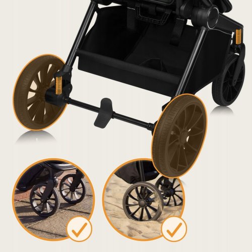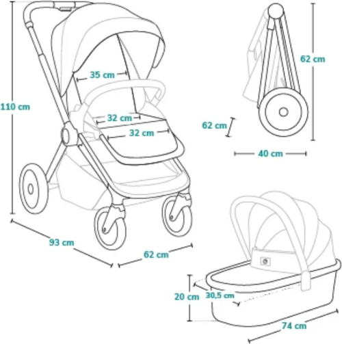 jednoduchá montáž kočíka v smere a proti smeru jazdy podľa potrieb rodičov alebo dieťaťa, bezúdržbové terénne PU kolesá, aretácia predných kolies s priamym smerom jazdy, na vnútornej strane malé vrecko na cumlík a na vonkajšej strane vrecko na telefón alebo kľúče, adaptéry, ktoré sú súčasťou balenia, sú vybavené pamäťovou funkciou, 3D panoramatická ventilácia umiestnená matrac s technológiou AiryDots, ktorý vďaka špeciálnym vetracím kanálikom zaisťuje neustále prúdenie vzduchu, poťah matraca je vyrobený z prírodného materiálu - bavlny, pevný hliníkový rám, nižšie ťažisko, lepšia stabilita, ľahké manévrovanie, nepremokavá XXL strieška s UV50+ a vodeodolnou vrstvou, priestranná korbička s pevným mad operadlá, 4 úrovňové nastavenia opierky nôh z nepremokavej tkaniny vysoko odolné voči znečisteniu, 5 bodové bezpečnostné pásy s polstrovaním, plné nastavenie opierky chrbta a opierky nôh umožňuje rozložiť sedačku do rovnej polohy, možnosť polohovania do roviny, aby sa zabránilo poklesu hlavičky počas spánku, odnímateľné detské ma priestranný kôš v spodnej časti kočíka s nosnosťou až 3 kg, ľahké skladanie do kompaktných rozmerov, ramenný popruh na kočík.