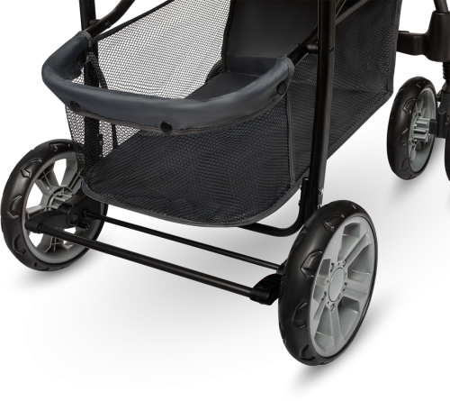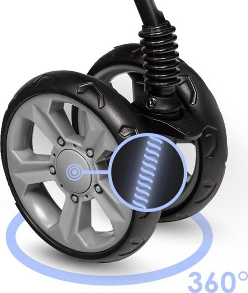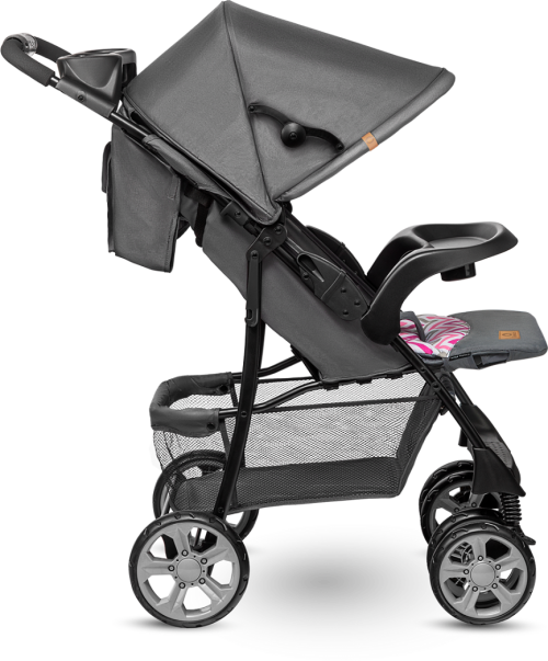vyrobený z vysoko kvalitných materiálov pevný rám zaisťujúci stabilitu 5 bodové bezpečnostné pásy dvojstupňová strieška so sieťovaným okienkom mäkký matrac odolný proti oderu a nečistotám veľký úložný priestor v spodnej časti kočíka praktická taška vhodná na prenášanie potrebných vecí odpružené kolesá a kolesá s brzdou rýchle skladanie a zámok nechcenému zloženiu overená kvalita certifikačným laboratóriom SGS