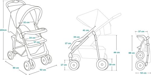 Rozmery kočíka: 90 x 53 x 102 cm Rozmery zloženého kočíka: 89 x 53 x 37 cm Príslušenstvo: