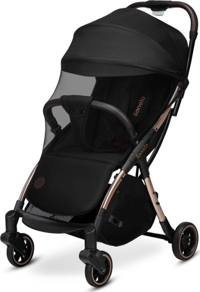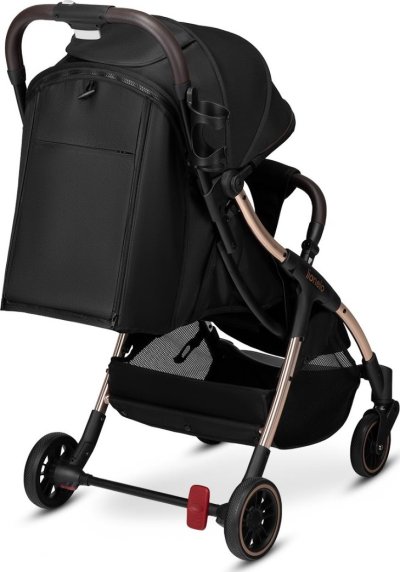 vyrobený z vysoko kvalitných materiálov odpružené kolesá z gumy a polyuretánu (predné 5,11 ", zadné 5,9") hliníkový rám, ľahká a odolná konštrukcia viacstupňové nastavenie opierky chrbta pomocou otočného gombíka nastaviteľná opierka nôh odnímateľné madlo pre deti (na oboch stranách kočíka ) 5 bodové bezpečnostné pásy viacstupňová strieška so sieťovanou časťou rukoväť z eko-kože odnímateľný nánožník zo strán potiahnutý eko-kožou veľký kôš na nákup v spodnej časti kočíka moskytiéra držiak na nápoje praktická taška na prepravu zloženého kočíka ľahké skladanie do kompaktnej veľkosti