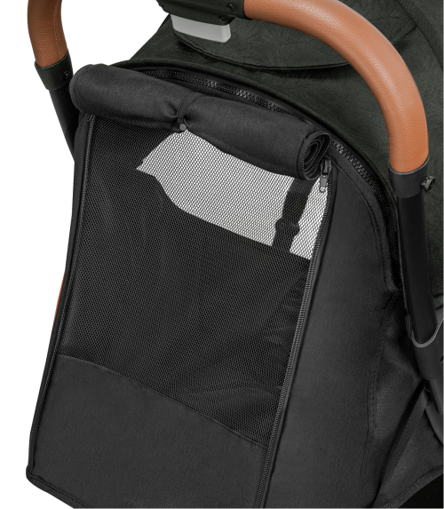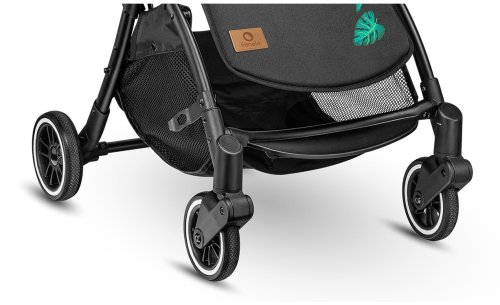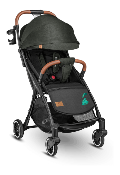 vyrobený z vysoko kvalitných materiálov odpružené kolesá z gumy a polyuretánu (predné 5,11 ", zadné 5,9") hliníkový rám, ľahká a odolná konštrukcia viacstupňové nastavenie opierky chrbta pomocou otočného gombíka nastaviteľná opierka nôh odnímateľné madlo pre deti (na oboch stranách kočíka ) 5 bodové bezpečnostné pásy viacstupňová strieška so sieťovanou časťou rukoväť z eko-kože odnímateľný nánožník zo strán potiahnutý eko-kožou veľký kôš na nákup v spodnej časti kočíka moskytiéra držiak na nápoje praktická taška na prepravu zloženého kočíka ľahké skladanie do kompaktnej veľkosti