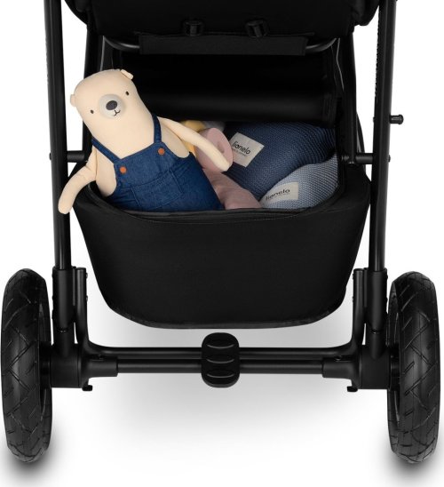 Nafukovacie kolesá s terénnymi kolesami s hlbokou vzorkou, otočné predné kolesá 360° s aretáciou, nožná brzda, nastaviteľné operadlo až do ležiacej polohy (pri rozložení operadla do polohy ležmo je dĺžka plochy 92 cm) , po rozložení opierky chrbta je k dispozícii odnímateľný veter , nastaviteľná XXL strieška s UPF + 50 filtrom, reflexné prvky na boudičke a košíku, nastaviteľné 5 bodové bezpečnostné pásy, nastaviteľná opierka nôh do 5 polôh zakončená technickou tkaninou, nastaviteľná rukoväť pre rodičov do 11 úrovní ( od 75 do 113 cm) , odnímateľné madlo, nákupný kôš na zips s max nosnosťou 3kg, praktické vrecko za operadlom, ľahké skladanie a rozkladanie, odnímateľný poťah, sedátko, košík aj búdka, rám kočíka je možné čistiť vlhkou handričkou, poťah a košík je možné prať ručne pri max 30 ° C, súčasťou balenie je aj nánožník, moskytiéra a držiak na fľašu.