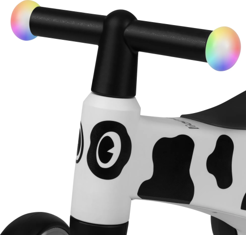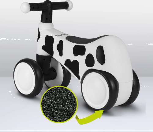 ergonomická konštrukcia prispôsobená telu dieťaťa stabilná vďaka 4 kolieskam kolieska sú vyrobené z EVA peny, takže sa osvedčia na každom povrchu protišmykové rukoväte majú osvetlenie, ktoré sa aktivuje pohybovým senzorom a potom sa automaticky vypne pohodlné sedlo s dvojitou vrstvou výplne zámok riadidiel obmedzí uhol otáčania prevrátenie dieťaťa počas jazdy zostavenie počas chvíľky bez použitia náradia - stačí spojiť 3 časti dohromady spĺňa európsku bezpečnostnú normu EN 71