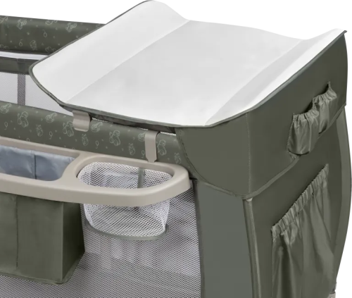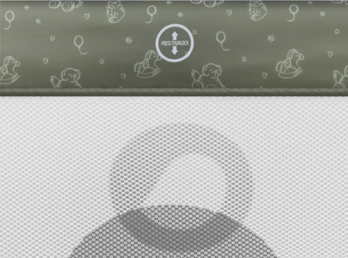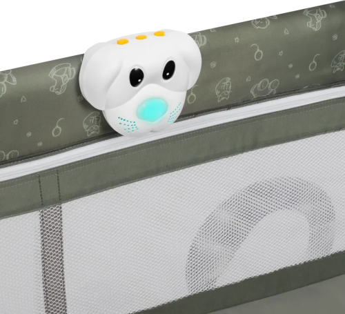 bočný vchod so zipsom + zámok, sieť proti hmyzu, madlá pre učenie stúpania, bez ostrých hrán, kvalitná mäkká podložka odolná proti oderom, systém LockGuard proti nechcenému zloženiu, melódie a interaktívny pes, nastavenie výšky matracov do 2 rôznych úrovní, prebaľovací pult + postranný panel s 3 kapsami nohy, Nosnosť: bez vyvýšenia matraca do 15 kg. s vyvýšením matraca do 9 kg.