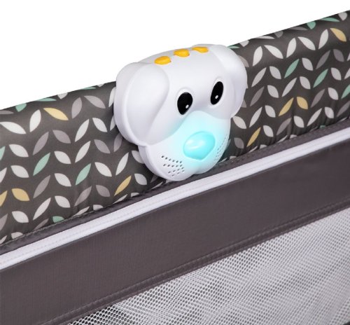 bočný vchod so zipsom + zámok sieť proti hmyzu madla pre učenie stúpania bez ostrých hrán kvalitná mäkká podložka odolná proti oderom systém LockGuard proti nechcenému zloženiu melódie a interaktívny pes nastavenie výšky matracov do 2 rôznych úrovní prebaľovací pult + postranný panel s 3 vreckami overená kvalita od certifika spoločnosti SGS kolesá s brzdou a pevné nohy