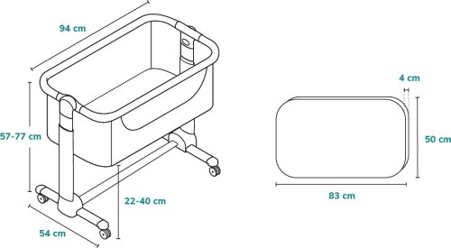 výškovo nastaviteľná do 5 úrovní, je možné nastaviť rôzny sklon matraca slúži ako samostatná postieľka, kolíska, prístelka a cestovná postieľka stabilná oceľová konštrukcia, imitácia dreva, neutrálne farby dve kolieska s brzdami mäkká a pohodlná matrac odnímateľné polstrovanie a poťah matraca možno prať v práčke 30°C vzdušná sieť po stranách zaisťuje správnu cirkuláciu vzduchu otváranie na boku postranné vrecká na uloženie potrebných vecí alebo hračiek blokovanie výškového nastavenia zabraňuje nechceným zmenám výšky bezpečnostné pásy na pripevnenie postieľky k posteli rodičov taška na prepravu zloženej postieľky