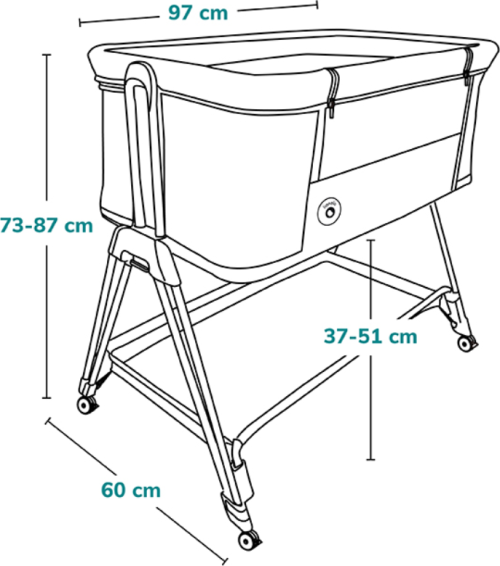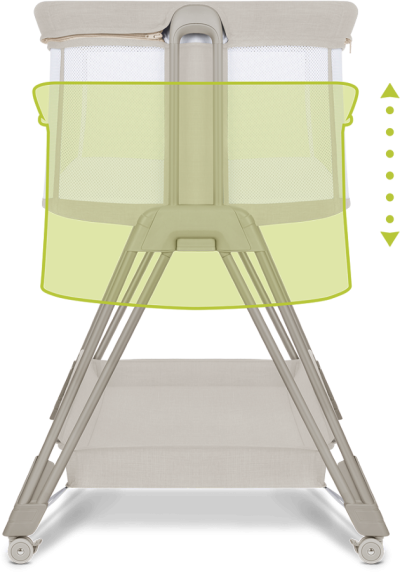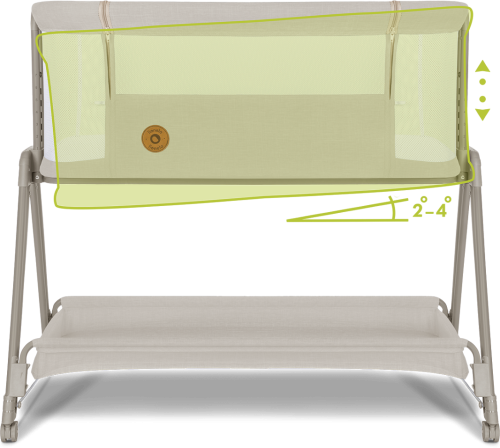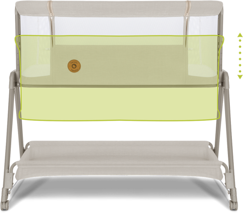 priehľadná priedušná sieťovina 6 úrovní nastavenie výšky nastavenia sklonu bočná otváracia strana ľahké premiestňovanie postieľky vďaka 4 kolesám so zámkom priestranný kôš mäkká tkanina snímateľný a prateľný poťah aj matrac