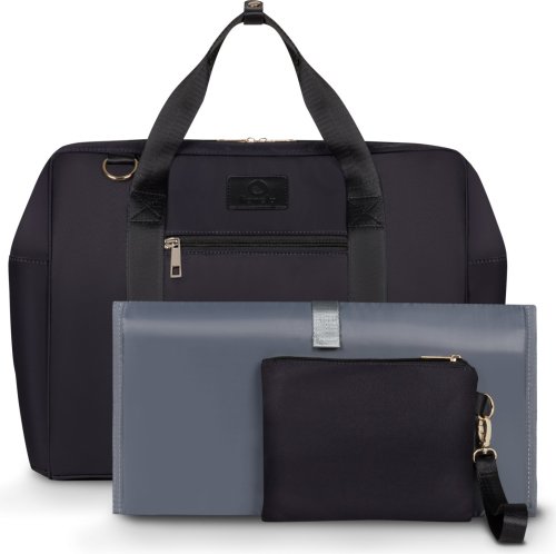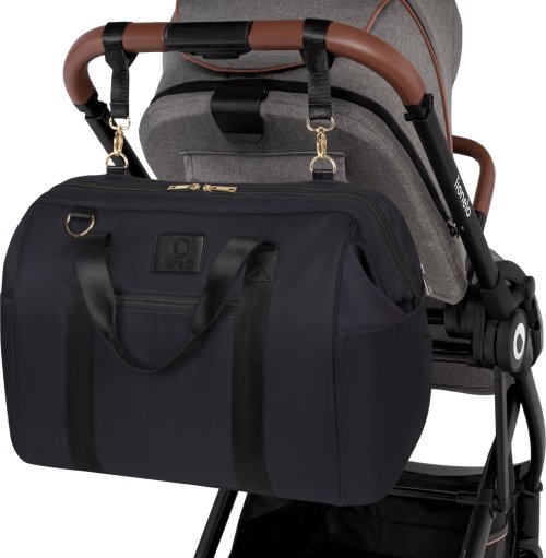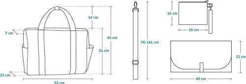 rozmery: 53 x 31 x 23 cm objem 20 l 100% polyester zapínanie na zips vonkajšie vrecká: 2 vrecká na zips, 2 postranné vrecká pre doplnky vnútorný priestor: 1 veľké vrecko na zips, 1 veľké vrecko na suchý zips, 2 vrecká na fľaše ramenný popruh na praktické prenášanie pásky na pripevnenie na rukoväť kočíka obsahuje: prebaľovaciu podložku a toaletnú tašku