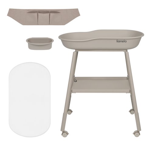 Lionelo Rosie je prebaľovací pult vybavený penovým matracom, textilným organizérom s praktickými priehradkami a odnímateľnou plastovou bočnou miskou, ktorá môže slúžiť ako miska na vodu. Štyri kolieska s brzdou uľahčujú presúvanie a pevná, stabilná konštrukcia zaručuje bezpečnosť bábätka pri starostlivosti.