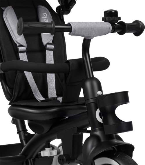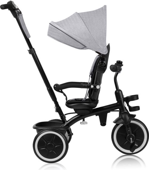 otáčacie sedadlo o 360 ° s polstrovaním na celej ploche 3bodové bezpečnostné pásy pre malé deti bezpečnostná zábrana okolo sedadla madlo so zvončekom súčasťou je priestranná taška na potrebné veci a držiak na nápoj jednoduché skladanie do kompaktnej veľkosti veľké bezúdržbové PU kolesá brzda na zadných kolesách výškovo nastaviteľná rukoväť pre rodičov: 82 - 100 cm veľká strieška chráni dieťa pred slnkom, vetrom a dažďom nastavenie sedadla vpredu, vzadu reflexné lemovanie na strieške polstrovanie na sedadle a operadlá veľkosť predného kolesa: 26 cm veľkosť zadných kolies: 23 cm jednoduchá a rýchla montáž troch zložiť bez použitia náradia