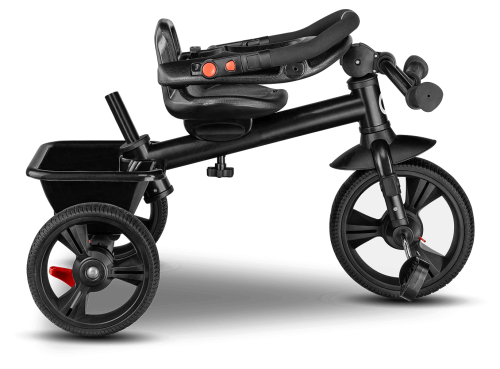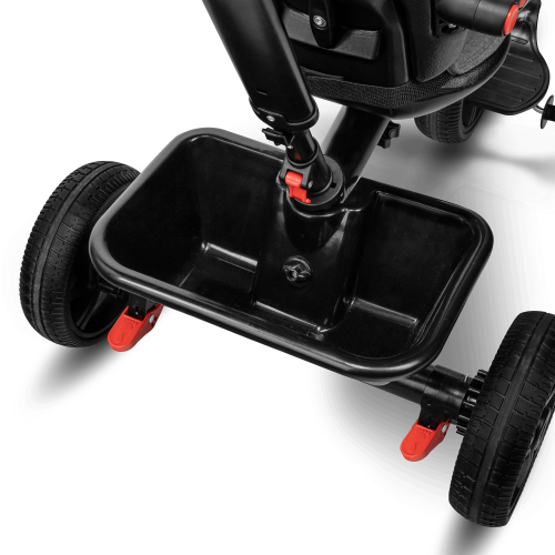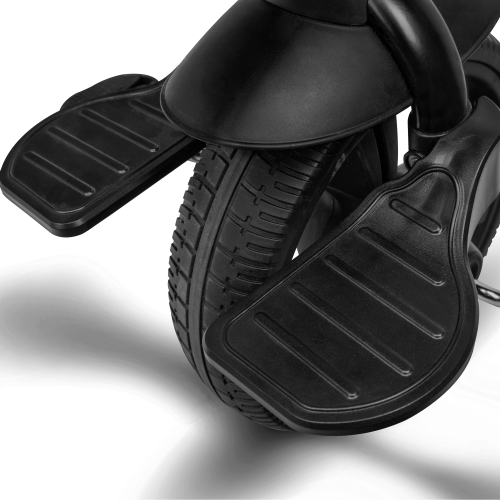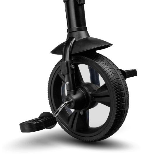 bezdušové pneumatiky s dezénom z vysoko kvalitného PU, predné 10" a zadné 8" zadné kolesá s dvoma brzdami nastaviteľná strieška s priehľadovým okienkom a madlo pre deti otočné nastaviteľné sedadlo - pojazd dopredu alebo dozadu nastaviteľná rukoväť pre rodičov 3bodové bezpečnostné pásy pre malé deti podnožka pre menšie deti reflexné prvky pre väčšiu bezpečnosť jednoduché skladanie do kompaktnej veľkosti rukoväť na prenášanie po zložení ideálna pre cestovanie, pretože zaberá veľmi málo miesta obsahuje košík, tašku a držiak na fľašu