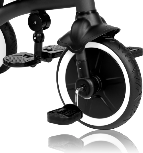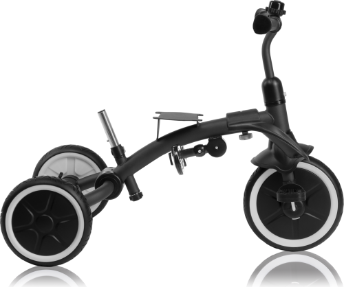 otáčacie sedadlo s polstrovaním na celej ploche 3bodové bezpečnostné pásy pre malé deti protišmyková rukoväť so zvončekom súčasťou je priestranná taška na potrebné veci a držiak na nápoje pod riadidlami jednoduché skladanie do kompaktnej veľkosti brzda na zadných kolesách Výškovo nastaviteľná rukoväť pre rodičov: 80 - 100 cm otáčajúce sa kolesá Podnožka pre najmenšie deti Podnožka pre staršie deti Nastaviteľná opierka chrbta Nastavenie sedadla vpredu, vzadu Zadné kolesá s nezávislými brzdami Reflexné lemovanie na strieške Extra polstrovanie na sedadle a operadle veľkosť predného kolesa 26 cm veľkosť zadných kolies 23 cm Nastavenie operadla v