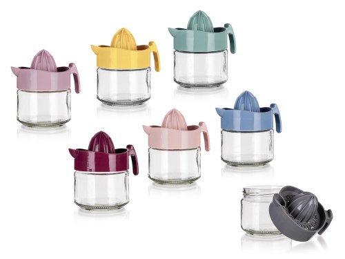 Lis na citrusy s miskou 0,3 l, sklo/PH mix farieb. objem: 0,3 l priemer: 8,5 cm šírka: 12 cm výška: 11,5 cm materiál: sklo, plast mix farieb: modrá, ružová, šedá, bordová Odšťavovač na citrusy DARA, …