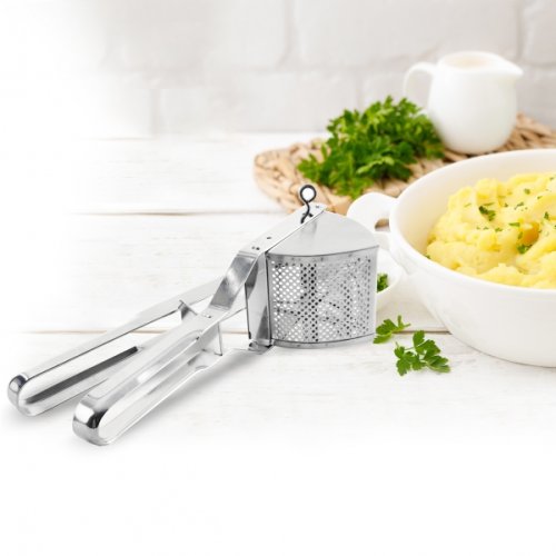 Kovový lis na lisovanie varených zemiakov a inej zeleniny.