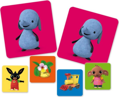 Kto nájde najviac rovnakých dvojíc, vyhráva! Zábavná rodinná hra s obrázkami hrdinov rozprávky Bing. Deti si pri hre trénujú pamäť. Balenie obsahuje: 12 dvojíc, tj 24 kariet Pravidlá hry: Karty sa zamiešajú a rozložia lícom dole tak, aby žiadny z hráčov nepoznal rozloženie kariet. Hráči postupne otáčajú dvojicu kariet lícom nahor, aby ich videli aj ostatní hráči. Pokiaľ karty patria k sebe, hráč ich odoberie a otáča ďalšiu dvojicu. Pokiaľ karty k sebe nepatria, otočí ich späť lícom dole a pokračuje ďalší hráč v poradí. Hrá sa tak dlho, pokiaľ nie sú všetky karty rozobrané. Víťazom sa stane hráč s najväčším počtom nájdených dvojíc.