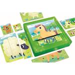 Obrázky sa skladajú na seba od najmenšieho a zároveň najjednoduchšieho - s 2 dielikmi - po najväčší a najzložitejší motív - s 5 dielikmi. Dieliky sú rovné, nemajú klasický puzzle zámok, sú tak vhodné pre úplne najmladšie skladače. Skladanie rozvíja detskú fantáziu, predstavivosť av neposlednom rade aj jemnú motoriku. Vďaka krabičke s rámčekom získava klasické skladanie atraktívnejšiu formu a zábavnejší nádych.