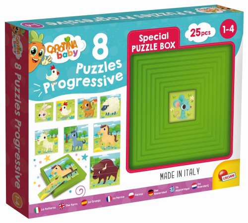 Osem progresívnych puzzle skladačiek zaujme na prvý pohľad nielen krásnymi obrázkami, ale predovšetkým neoceniteľnou pomôckou v podobe štvorcovej plastovej krabičky s deviatimi úrovňami rámčekov pre pohodlné a zároveň presné skladanie. Výhody: