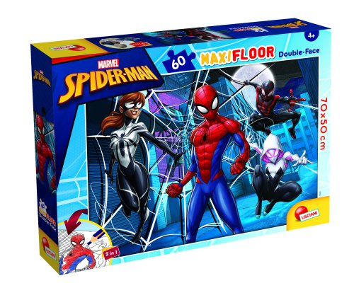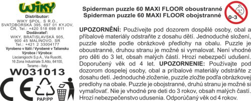 Lisciani Spider-Man maxi floor puzzle obojstranné. 60 dielikov. Rozmer 70x50cm. Postav obrázok na jednej strane a vyfarbi obrázok na druhej.