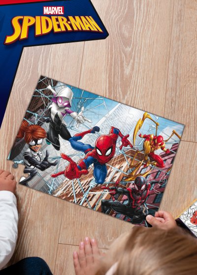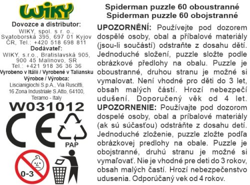 Lisciani Spider-Man puzzle obojstranné. 60 dielikov. Rozmer 50x35 cm. Postav obrázok na jednej strane a vyfarbi obrázok na druhej.