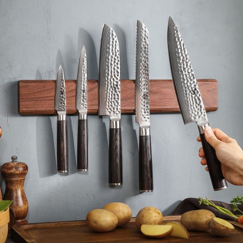 Po celej dĺžke lišty sa nachádzajú silné magnety , ktoré udržia nože bezpečne na mieste. Navyše zamedzíte vzájomnému dotýkaniu čepelí, a tým aj ich stupeniu. Pripevníte na ňu až 6 nožov naraz . Prevedenie z kvalitného dreva, ošetreného zmesou olejov a vosku, zaručuje jej dlhú životnosť a odolnosť.