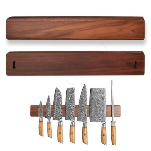 Lišta je ošetrená zmesou prírodných olejov a voskov , ktorá zvýrazňuje krásnu kresbu orechového dreva a zároveň chráni jeho povrch. Silné magnety uchytia nože bezpečne a rovnomerne po celej dĺžke, čím chránia ich ostrie pred poškodením. Inštaláciu si zvolíte podľa typu steny – bez vŕtania pomocou 3M pásky alebo klasicky na skrutky.