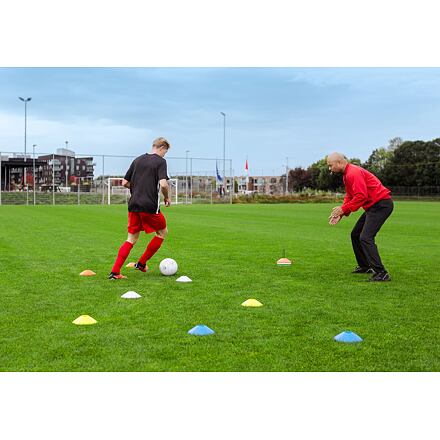 Sada vytyčovacích mét Lite Speed pre vaše tréningy. Vytyčovacie méty sú vyrobené z pružného PE materiálu. Vďaka pestrým farbám sú dobre viditeľné. Mety slúžia ako trénerská pomôcka pri organizácii tréningov na vytýčenie trasy či plôch. Použiť ich možno ako pri vonkajších, tak vnútorných aktivitách . Balenie obsahuje praktický stojan so 40 kusmi met. Výška jednej méty je 5 cm a priemer 18,5 cm.