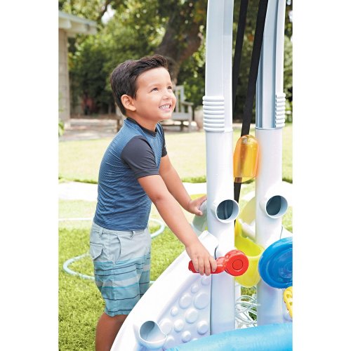 Pokiaľ ide o hračky do vody pre deti, Vodná hracia zóna je tak vzrušujúce! Prineste vzrušenie z vodného parku do svojej vlastnej záhrady - jednoducho pripojte jeho vodnú hadicu a spustite dvojitý vodopád pre množstvo striekajúcich akcií! Počasie nie je tak dobré? Žiadny problém. Túto zábavnú aktivitu si môžete užiť aj vo vnútri. Naplňte dopravný pás guličkami, aby ste naplnili horné vedro, zatiahnite za kábel a ... nepozerajte sa hore! Malí budú radi hrať s loptičkami vo vode v nafukovacom bazéne. • Interaktívna hračka s nafukovacím striekajúcim bazénom a plastovými loptičkami • Riaďte prietok vody, aby ste naplnili rozstrekovaciu nádobu alebo aktivovali dvojitý vodopád • Deti poháňajú vodný/guľový dopravník • Skvelé pre vnútornú aj vonkajšiu hru • Vrátane 25 plastových loptičiek a striekajúceho bazénu •
