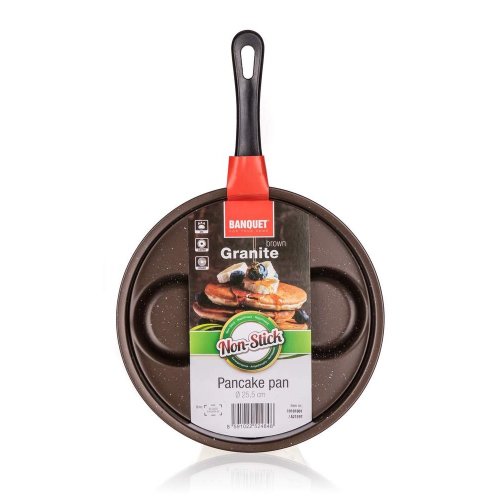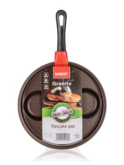 Lívanečník 24 cm, 4 lievance, nepriľnavý povrch, GRANITE Brown. priemer: 24 cm materiál: uhlíková oceľ s nepriľnavým povrchom hrúbka materiálu: 0,7 mm farba: hnedá materiál rukoväte: plast rukoväť s otvorom …