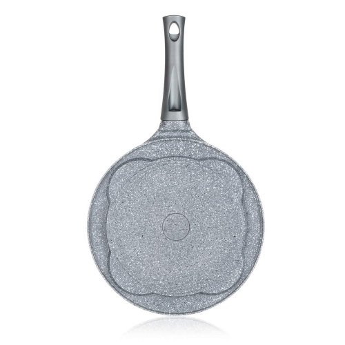 Liata hliníková panvica na lievance GRANITE Grey, s indukčným dnom a vnútorným nepriľnavým povrchom, je vhodná na prípravu lievancov a vaječných omeliet s minimálnou potrebou tuku. Panvica je vhodná na všetky typy sporákov vrátane indukcie. Panvica je veľmi odolná a ľahko sa udržuje. Panvica je opatrená ergonomickou rukoväťou so soft - touch povrchovou úpravou pre jednoduchú manipuláciu a očkom na zavesenie. Lívanečník môžeme použiť na prípravu lievancov, vaječných omeliet, volských ôk alebo napríklad zemiakov s minimálnou spotrebou tuku.