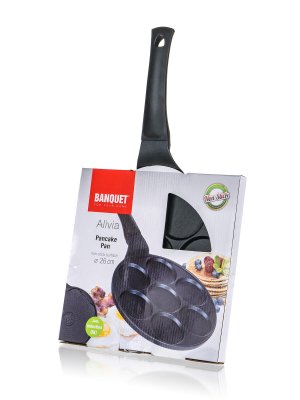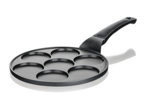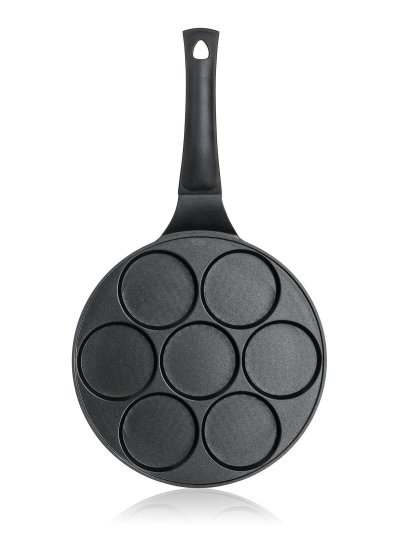 Hliníková liata panvica na 7 lievancov ALIVIA Smile má vnútorný nepriľnavý povrch a je vhodná na všetky typy sporákov vrátane indukcie. Lívanečník s detskými motívmi na dne panvy, môžeme použiť na prípravu lievančekov, volských ôk a zemiakov s priemerom 8 cm.