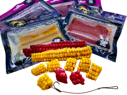 Nakladané kúsky mladej kukurice sú veľmi funkčnou nástrahou na lov kaprovitých rýb. Kúsky sú vytiahnuté z aromatických nálevov z aminokyselín, kde nejaký čas fermentovali, tak aby boli pre ryby viac atraktívne. Nástraha je spracovaná tak, aby bola vrátane drevnatej časti, ktorá nástrahu vyvažuje a vďaka jednostrannému ťažisku sa aj lepšie zasekáva. Čo viac, táto časť drevnatej nástrahy veľmi dobre nasáva našu špeciálnu arómu a vylučuje ju pod vodou po veľmi dlhú dobu. Kapre budú tiež prekvapení iným tvarom. Nástrahy sa vyrábajú v troch veľkostiach S, M, L. Veľkosť S je pre feederové chytanie, veľkosť M pre kaprové chytanie a háčiky č. 5- č.8 a Veľká veľkosť L je určená pre lov kapitálnych kaprov a háčiky veľkosti č.4 a viac.