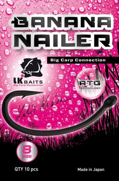 Na vývoji háčika Banana Nailer pracoval najužší tím LK Baits s japonskými technológmi cez tri roky a teraz sme šťastní, že ako prvý predstavujeme rybárom úplne nový tvar háčika, ktorý je prepracovaný aj do tých najmenších detailov. Banana Nailer je vyrobený naším technológom priamo v Japonsku za využitia najnovšej technológie a použitie najkvalitnejšej japonskej ocele a najvyššej ľudskej zručnosti. Háčiky prechádzajú chráneným procesom ATG temperácia, ktorá im dodáva maximálnu pevnosť a hlavne dlhodobú ostrosť. Nová matná povrchová úprava zase zaručuje dlhodobú ochranu proti korózii a neznižuje pevnosť, ako je tomu u klasických teflónových háčikov. Banana Nailer je jedinečný svojím tvarom, na ktorom sme dôkladne pracovali, aby sme našli správny uhol k tomu najdokonalejšiemu záseku rýb. Stretávate sa tak s jedným z najdokonalejších háčikov, ktorý vznikol na základe praktických skúseností! Banana Nailer je jeden z najuniverzálnejších háčikov pre rôzne spôsoby použitia. Zámerne sa vyrába iba vo veľkosti č.8, ktorá sa najviac osvedčila. Vďaka vyhnutiu háčika sa Vám ponúka prezentácia nástrahy na niekoľko spôsobov s maximálnou účinnosťou. Banana Nailer použite na plávajúce boilies, mini boilies a nebojte sa aj veľkých nástrah. Ako správne nadviazať montáž sa dočítate TU: https://www.lkbaits.cz/carp-talk-moderni-alebo-ucinne-navazce/