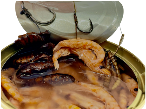 Vysoko kvalitné celé krevetky naložené vo vlastnej šťave. Vďaka špeciálnemu výrobnému procesu sa vo veľkej miere zachováva vôňa a sviežosť kreviet. Vďaka sterilizácii je krmivo zdravotne nezávadné. Čerstvé krevety sú veľmi atraktívna nástraha/návnada a je len na Vás, či ich použijete do PVA pančuch, alebo stick mixov, partiklov alebo ako samostatnú nástrahu. Pokiaľ zmiešate obsah konzervy 1:1 s tekutou potravou All Amino Nutric, vznikne Vám veľmi atraktívny dip alebo booster.