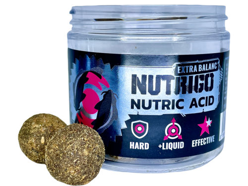 Jedna z našich najúčinnejších príchutí, tentoraz konečne vo verzii NUTRIGO. Vďaka našej aminokyselinovej tekutine vo vnútri nástrahy, bude ešte intenzívnejšie lákať kapry vo vodnom prostredí. Geniálne sústo! Nutrigo Nutric Acid je vhodné na všetky typy vôd, ale na štrkopieskovniach nemá konkurenciu. Nástraha vodná na celoročné použitie. Odporúčame k nástrahe prihodiť hŕstku NUTRIGO FEED-EX Monster Crab alebo boilies NUTRIC ACID. Nutrigo Balanc je vyrobené vôbec z toho najlepšieho, čo kedy bolo pre lov kaprov objavené a doslova prešpikované tými najlepšími prírodnými nektármi, ktoré intenzívne unikajú z nástrahy v závislosti od množstva prepichnutia povrchu. A čo viac? Nástraha je neutrálne vyvážená - nadľahčená, čo mnohonásobne zvyšuje šance na záber a úspešné zaseknutie. Nutrigo Balans je TU! Nutrigo Balans prepichnite ihlou a klasicky navlečte na vlas pod háčik (doba účinku je až 24 hodín). Pre rýchlejšie uvoľňovanie, krátkodobé vychádzky alebo zimné rybárčenie, môžete nástrahu prepichnúť viackrát (doba účinku je až 12 hodín). Celoročné použitie! Ručná výroba. Patentovo chránené. Uvedený priemer je orientačný. Na povrchu nástrahy sa môže vyskytovať tekutina. Nástraha môže meniť farbu. Obsah balenia: 14 kusov nástrah